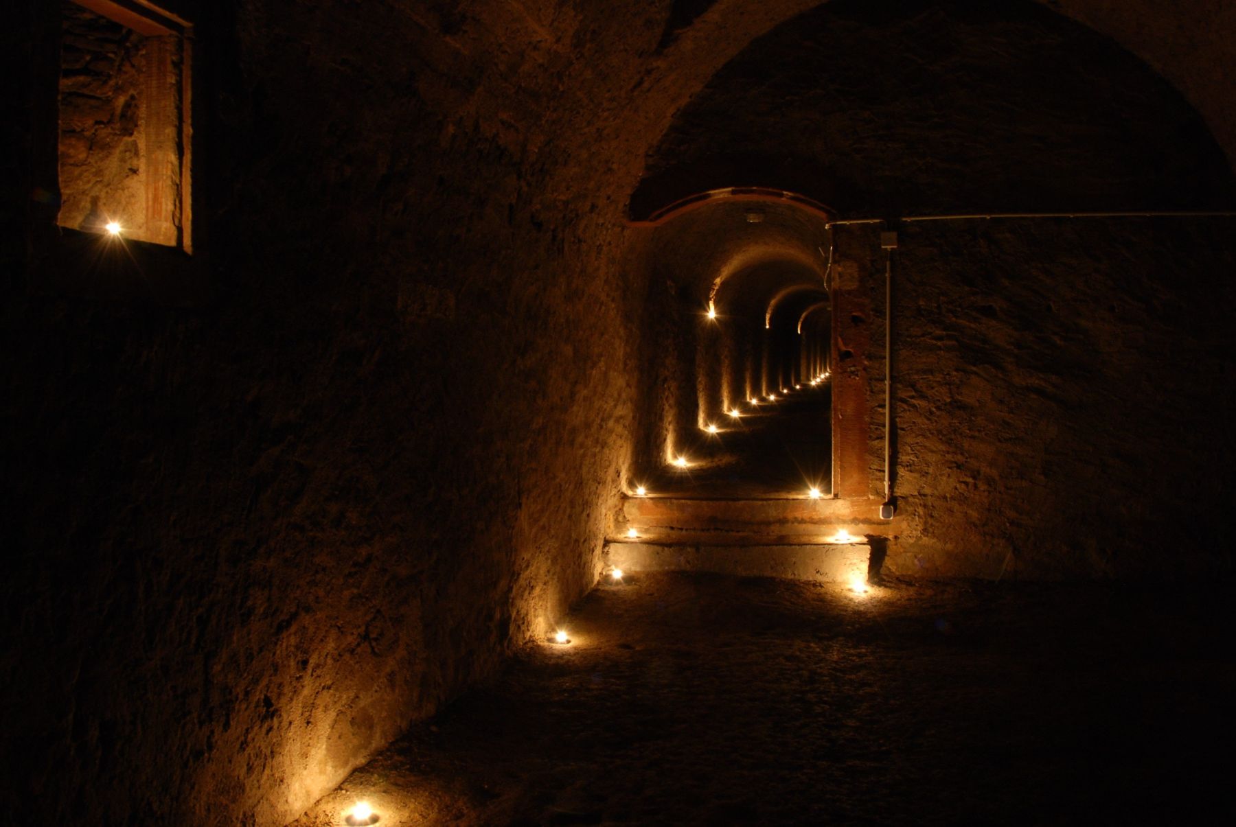 Hunderte LED-Lichter verzaubern die alten Gänge und Gewölbe des Fort Josef mit einer besonderen Stimmung. Sie machen die architektonische Schönheit der von kurfürstlichen Baumeistern geschaffenen unterirdischen Anlagen sichtbar.